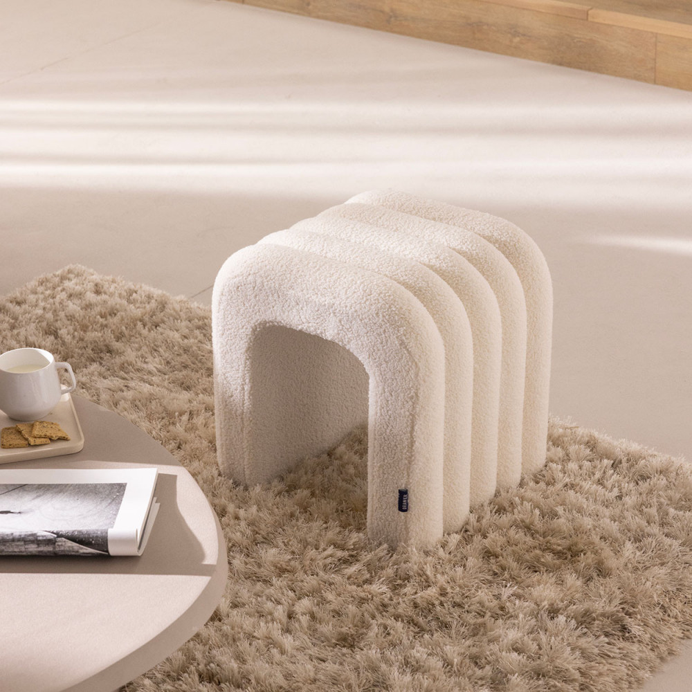 Après les chaises, les banquettes ou encore les canapés, place aux assises nomades avec le lot de 2 tabourets rembourrés en tissu bouclette Mui. À la fois pratiques et décoratifs, ils réinventent le tabouret traditionnel en lui offrant une silhouette contemporaine en arche, douce et sculpturale. Vous apportez ainsi à votre intérieur une touche moderne, sans jamais compromettre le confort.