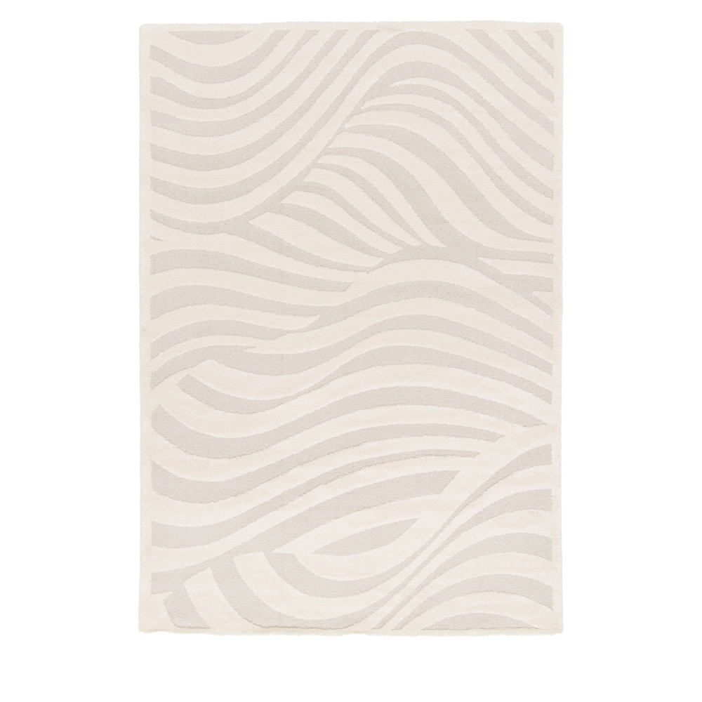 Envolez-vous vers les pays nordiques avec Falun. Ce tapis rectangulaire au style résolument scandinave se caractérise par une couleur écrue sur laquelle se dessinent des formes abstraites ondulant comme des vagues.