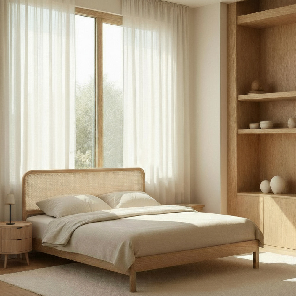 Vous avez un lit 2 places confortable, mais il se compose uniquement d'un sommier et d'un matelas posé dessus ? Vous avez de quoi ranger vos affaires dans la chambre, mais côté déco, ça manque de charme ? Installez alors derrière votre lit une tête de lit, comme ce joli modèle en cannage et bois nommé Billy et signé Drawer ! On vous fait les présentations ?