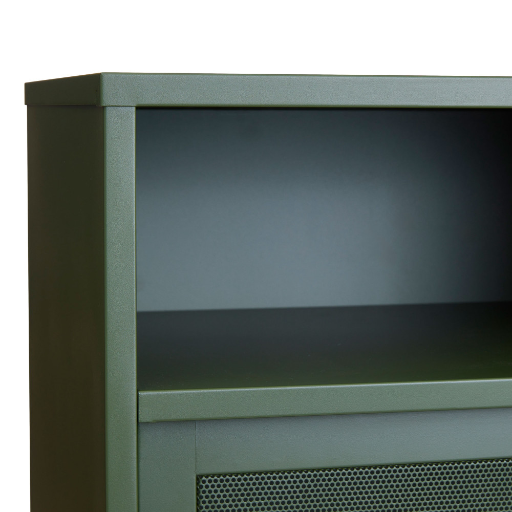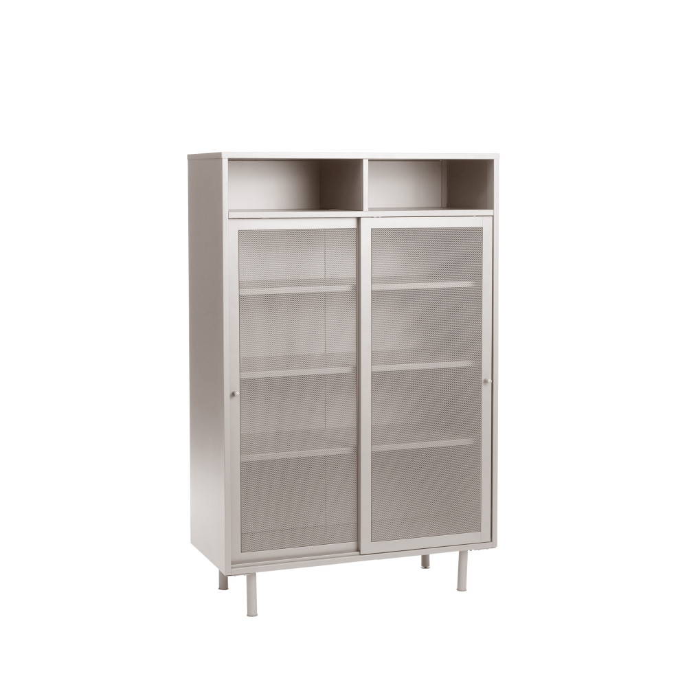 Le vaisselier Kiso affiche un piétement en métal pour une stabilité optimale et un design épuré. La finition ajourée de ses portes laisse quant à elle passer la lumière et allège visuellement le meuble, pour un rendu aérien.